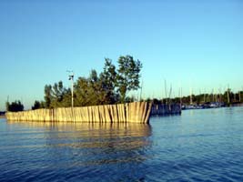 Kringum žaš er allt aš 5 km breitt sefbelti, nema viš žorpiš