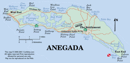Anegada er norðaustlægust BJ á 64°20' V og 18°44' N.