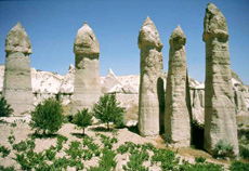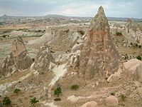 Litlu-Asíu, Tyrklandi, er vindsorfið móberg, sem varð til í eldgosum.