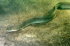 The eel is a nocturnal animal which feeds on all kinds of worms,